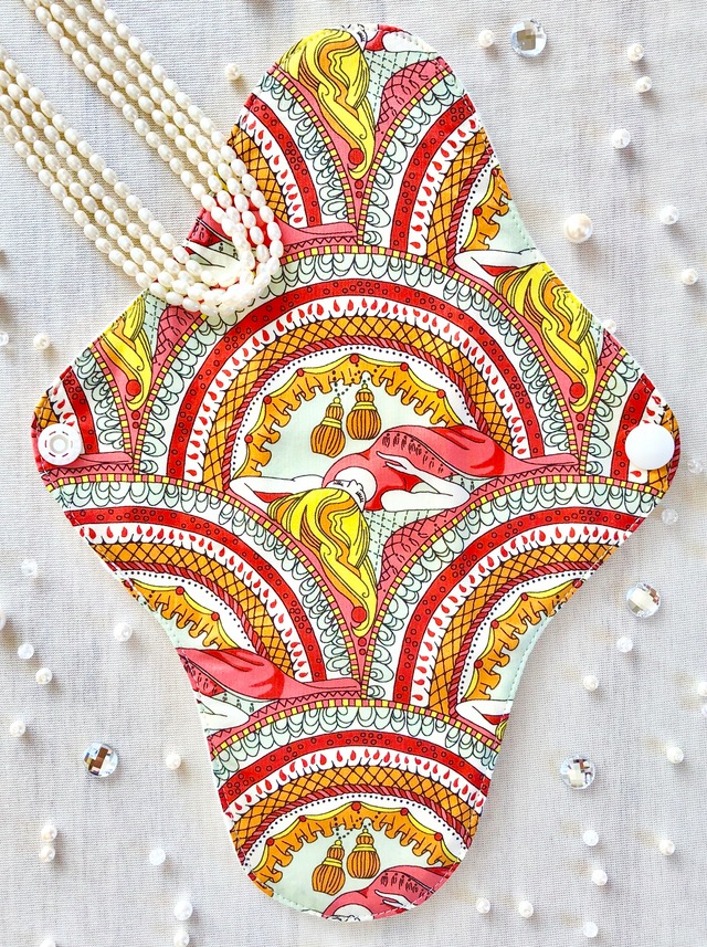 希少な宝石柄のリバティプリントでお仕立てした、まさにアナタヒメ様への献上品。 眩い輝きを身に着けることで、貴女の中にあるパワフルな女性性のエネルギーを呼び覚まします☆ ご自身と繋がる大切な時間に、 素材も美しさもワンランクアップした Himeoaジュエリーナプキンをどうぞお役立てください。 華やかな商品ですので、ギフトにもおススメです。 (ルビー&サファイア) 鮮やかなレッドとブルーをベースに ビビットピンク、イエロー、オレンジ、グリーンが入っていたりと、シリーズの中で1番ゴージャスなカラーとなっています。 コットン100%のプリント生地とは思えない発色と美しさをお楽しみください☆ ------------------------------------- ・長さ約25・5cm(普通~多い日の昼用) ・無漂白ネルの吸収体3枚入り ・肌面は、"GOTS認証オーガニックコットン" しっとりした滑らかな肌触りがクセになる 「両面起毛オーガニックプレミアムネル」」(日本製)を使用。 無漂白オーガニックコットン100%の高級素材です。 厳しい品質チェックをクリアした、体にも環境にも優しいプレミアムな素材。 起毛の回数や深さを職人さんが何度も調整してふわふわに仕上げています。 綿100%なのにしっとりとしたぬめり感のある肌触りが特徴。 優しさに包まれる、今までにない心地よさを体感してください☆ ・プリント地は雑貨や洋服でもお馴染みの 「リバティ」社の国産タナローン生地。 上質なシルクのつやと手触りを木綿で再現するために英国リバティ社が独自に開発したローン素材。やわらかな肌ざわりと軽さが特徴です。 ・防水布は「プレミアム透湿防水布」を使用。 湿気を通して水分を通さない、高品質日本製の防水布に「消臭・制菌」をプラス。 「BIO GURAD制菌加工」で細菌の増殖を制して清潔をキープ! SKEマーク安全基準合格品です☆ ・縫い糸は、外周のステッチは美しさと強度を保つため高級ポリエステル糸を使用。 粘膜に近い吸収体部分は、お肌に優しい日本製オーガニックコットン糸をしています。 ナチュラルな肌触りをお楽しみください。 ※オーガニックコットンについての注意点※ ・肌面に黒いプツプツやシミのような物が付いている場合がありますが、これらは「綿花の葉っぱと茎」無漂白の証ですので安心してご使用ください。 (洗濯をすると徐々に取れてきます。) ・洗濯には自然素材の洗剤のご使用をおすすめしております。 (ナチュラルクリーニング系の物。アルカリウォッシュや液体せっけんなど) また、柔軟剤の使用は吸水性を損ねたり、生地を傷める可能性もあるのでご使用はお控えください。 ・天然素材なので若干縮む場合がございます。 ・簡単な説明書をお付けしておりますが、 初めてお使いになられる方や、ご不明な点がある場合は、 オンラインショップのメッセージタブより、 何でもお氣軽にご相談・お問い合わせください。 「Himeoa retreat」では商品お渡し後も、安心してご使用いただけるようにサポートさせていただいております(^^)