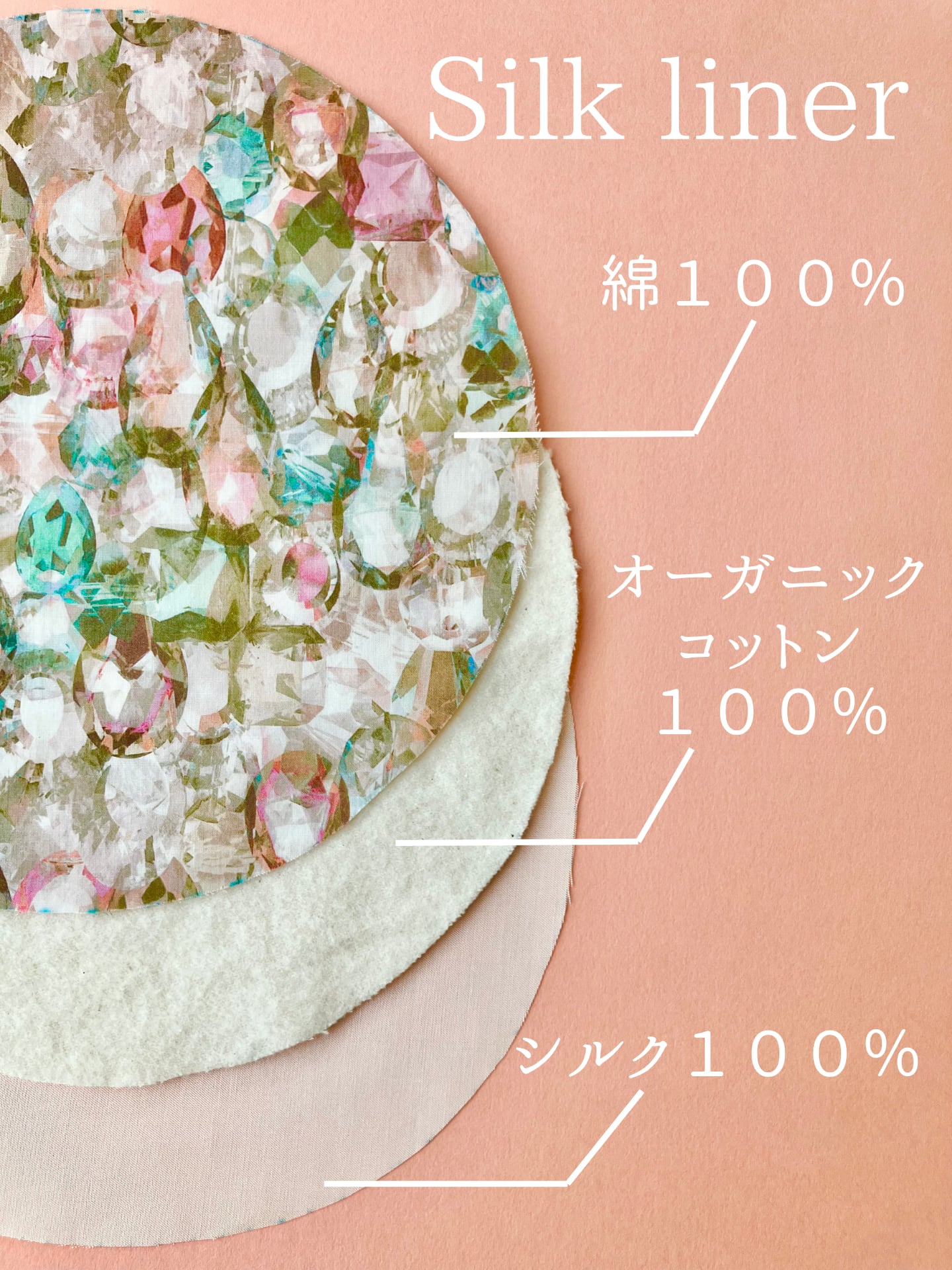 ・シルクライナーはシルク生地、オーガニックネル生地、プリント生地の【3枚構造】です。
