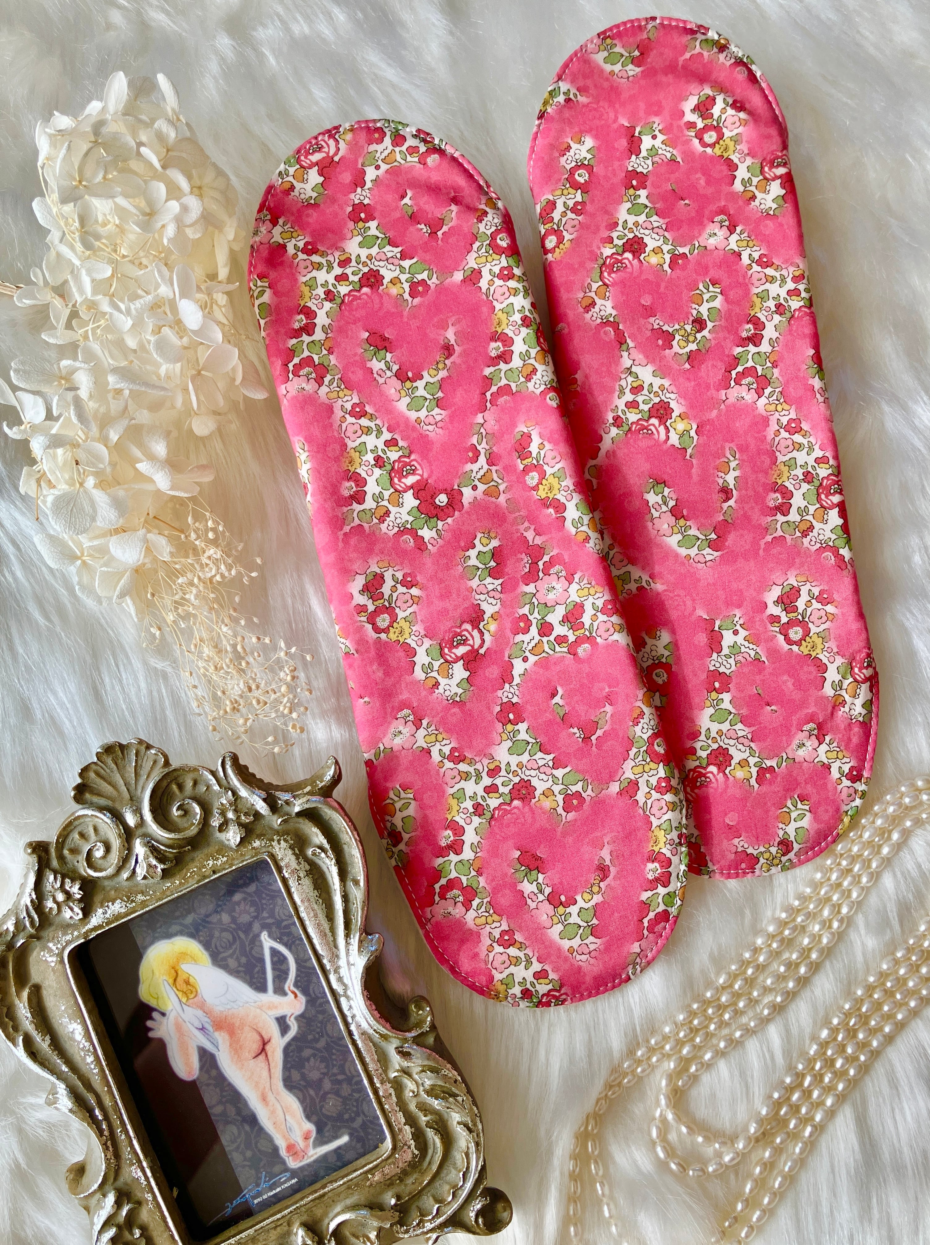 手書き風のハートペイントを重ねたとってもキュートな布ナプキンが出来ました♡