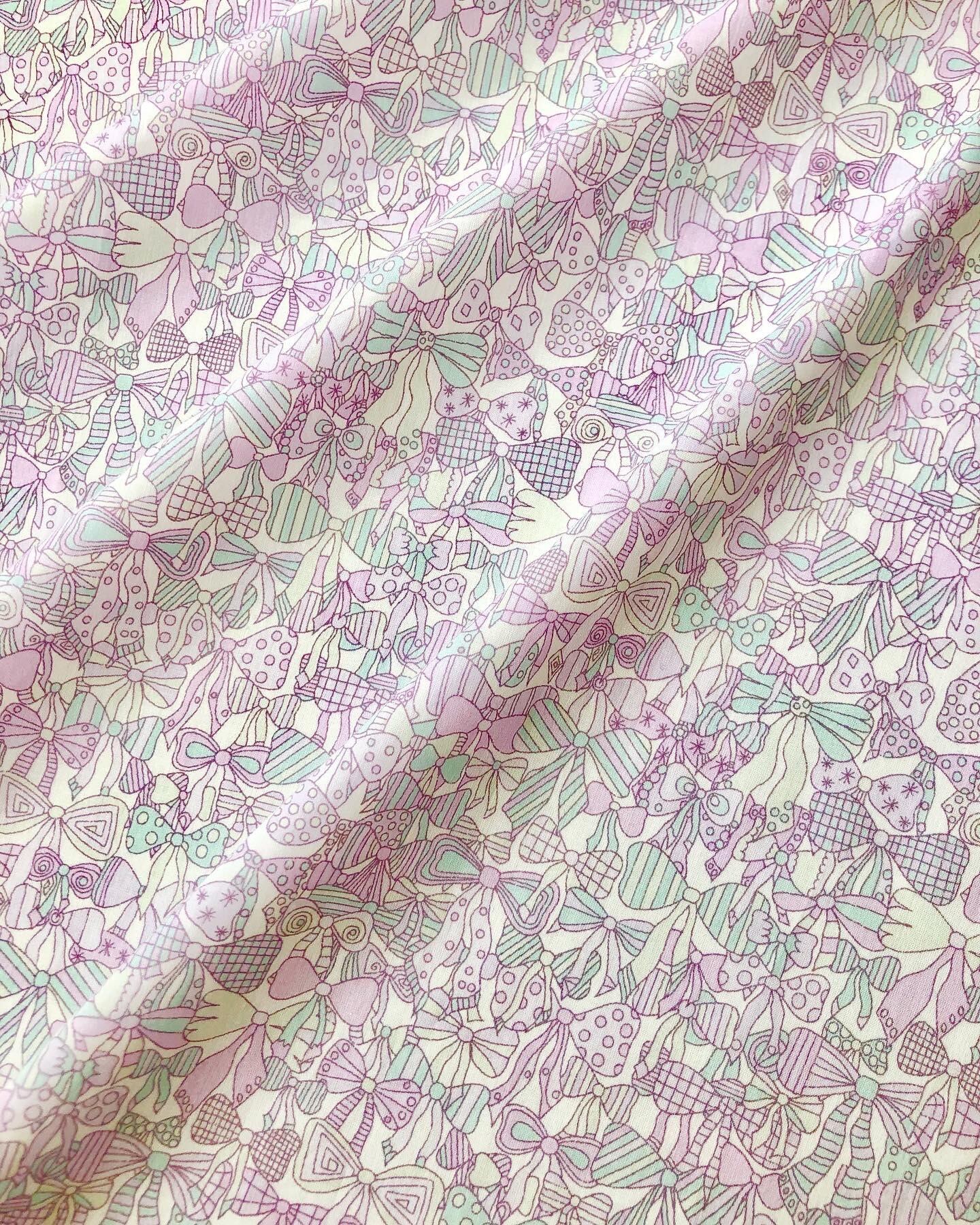 上質なシルクのつやと手触りを木綿で再現するために英国リバティ社が独自に開発したローン素材。やわらかな肌ざわりと軽さが特徴です。