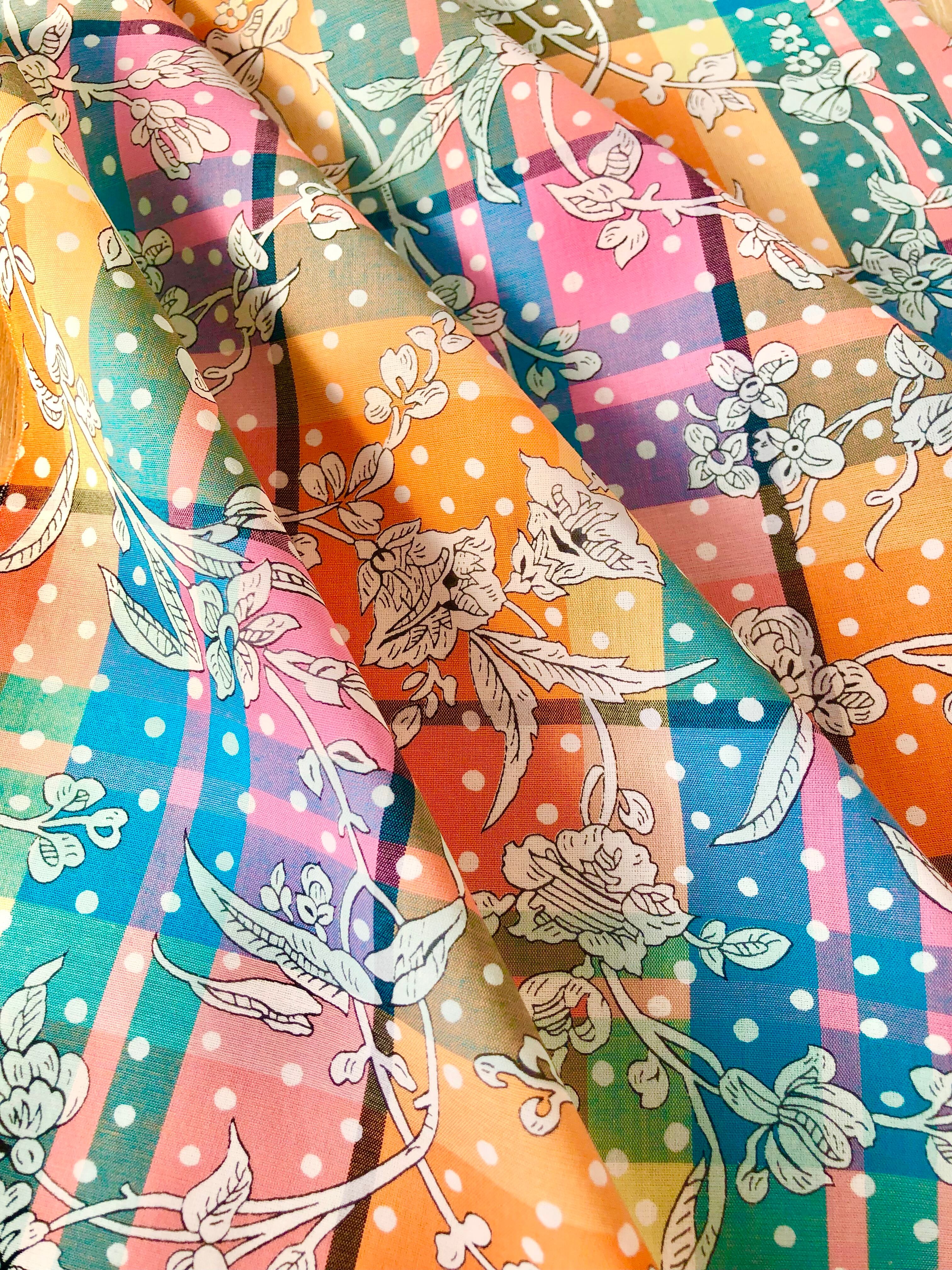 肌触りのよい先染めマドラスチェック柄に、リバティの人気柄を組み合わせた色鮮やかなコレクションです。
